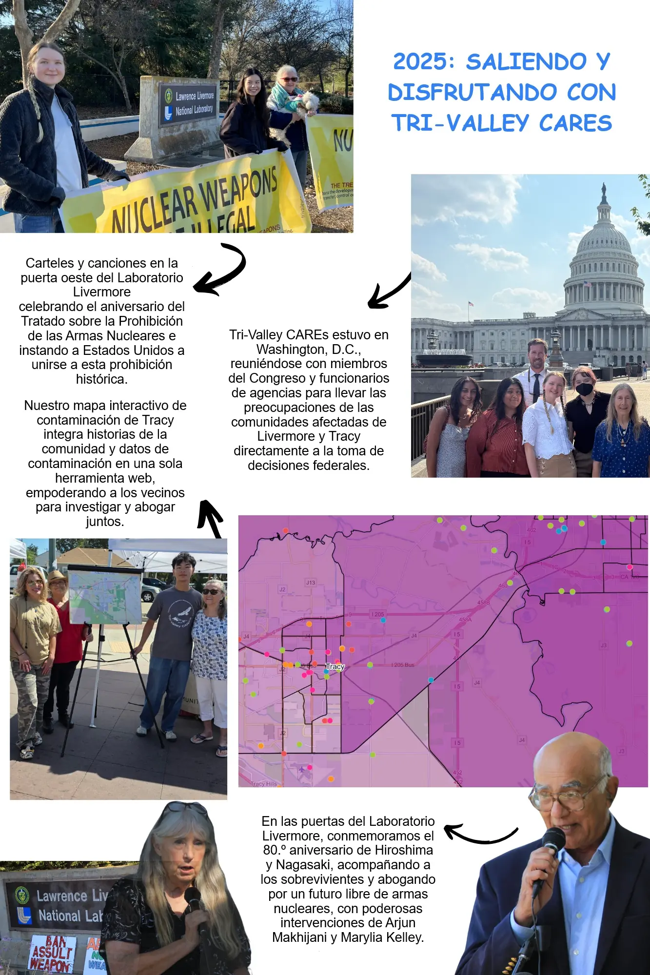 ¡Tri-Valley CAREs tuvo un año 2025 extraordinario! En un momento en que los riesgos que plantean las armas nucleares son cada vez mayores, el trabajo de Tri-Valley CAREs es más importante que nunca. Nuestro personal, junta directiva y voluntarios lograron grandes avances en 2025 (haga clic aquí para ver los logros del personal). Para obtener más información sobre nuestro año, lea la carta de nuestro director ejecutivo, Scott Yundt.