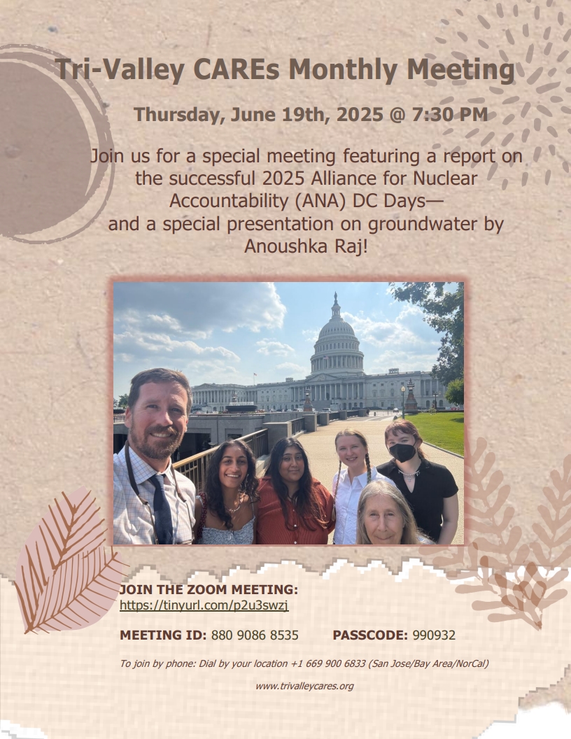 Tri-Valley CAREs is pleased to invite you to our next monthly meeting, where we will announce the winners of our recent video contest. We will watch the award-winning entries together, hear from some of the creators, and celebrate their incredible work. Join us virtually at 7:30 p.m. on Thursday, July 17, 2025. You will also […]
