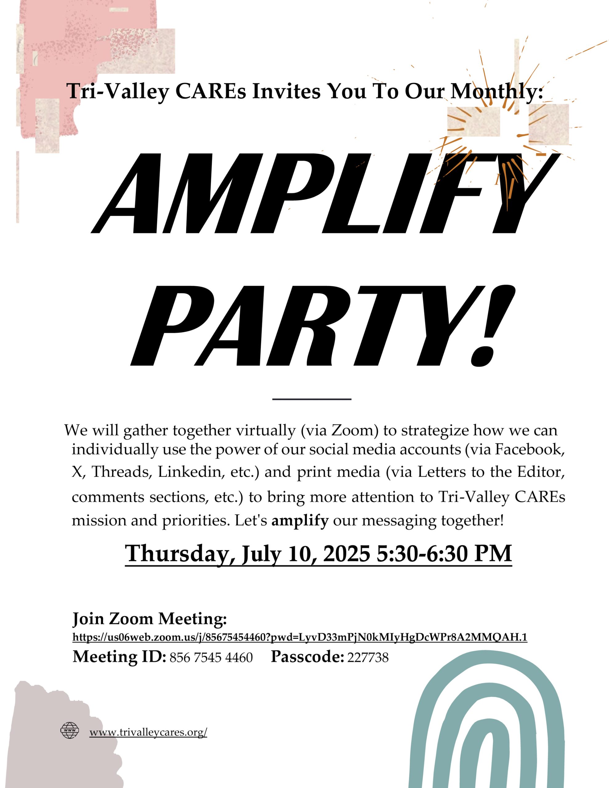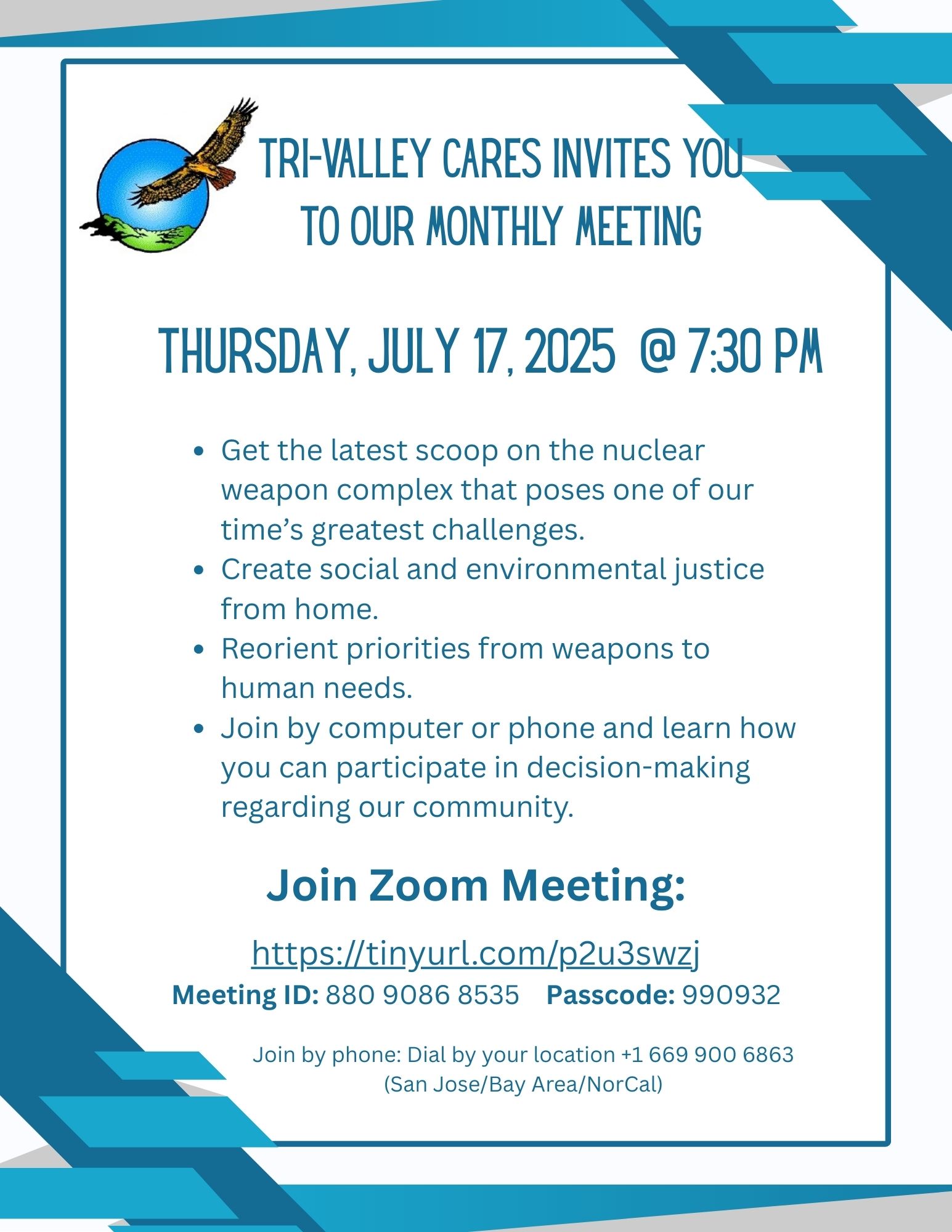 Tri-Valley CAREs Invites You to Our July Monthly Meeting