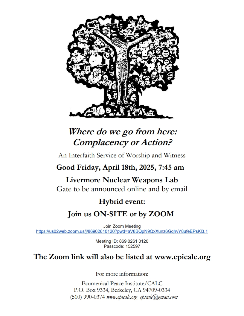 Good Friday, April 18th, 2025, 7:45 am @ the Livermore Nuclear Weapons Lab
